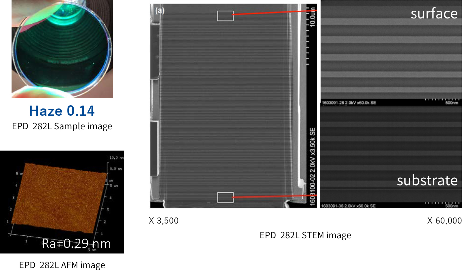 在TiO2/SiO2 282层33μm的多层膜中,抑制了粗糙不平,“实现低Haze”。
