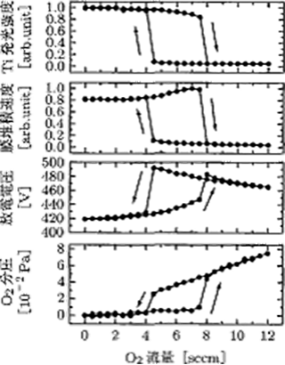 当保持放电电流不变,增加或减少活性气体时,会观察到图5.18所示的迟滞现象。这使成膜速度的控制变得复杂。