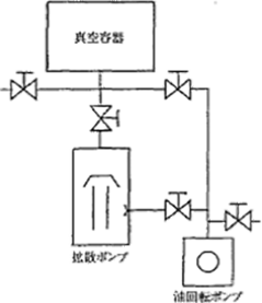 图6.3为典型真空排气系统的系统图。 图6.3中的扩散泵可以用低温泵或涡轮分子泵代替,系统图无变化。然而,由于低温泵是捕集式泵,图中位于扩散泵后面的阀门动作会有所不同。换句话说,如果是低温泵,必须在排出一定体积后进行泵的再生,而该体积取决于泵捕集极限的气体量。