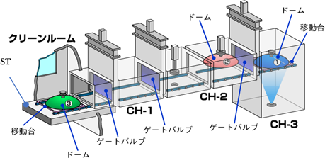 | CH-2: | 移动机构&后处理工艺 ・移动机构与CES-2M相同 ・在从CH-2移动到CH-1之前,进行防水处理等需要真空的+后处理。 |