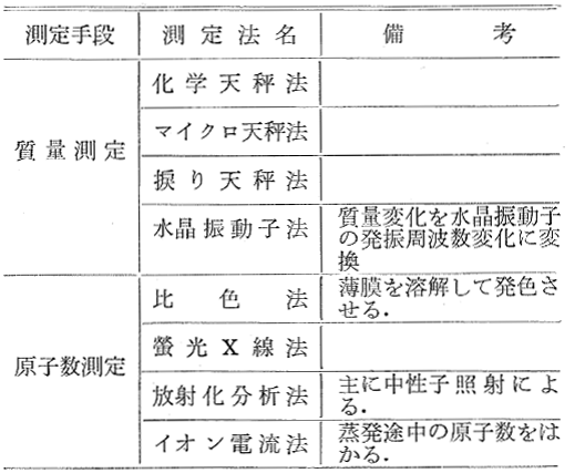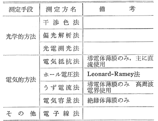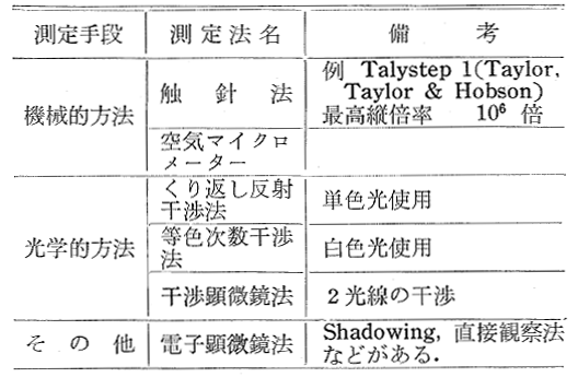 表1、表2和表3列出了引用自参考文献3)的各种膜厚及其测量方法。