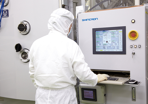 研发中心配备有先进的成膜设备。客户可以和技术人员一边实际操作设备一边对客户带来的样品进行当场成膜。另外,可以立即进行最终阶段的产品检查的测量室和试验室也很完备。
